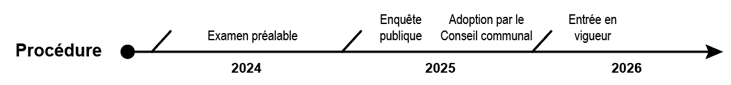 Après examen et validation par la Direction générale du territoire et du logement (DGTL), la zone réservée est mise à l’enquête publique, puis soumise à l’adoption du Conseil communal et enfin à l’approbation du Département cantonal compétent.